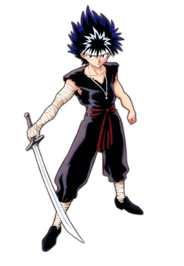 Hiei is part ice & fire demon that got cast out as a baby. He got raised by bandits for a short while. Eventually he was becoming one of the deadliest beings in both human & demon worlds. This guy is truly amazing at what he can do especially in a short period of time. Hiei learned sword skills from the same surgeon that gave him Jagan his third eye.